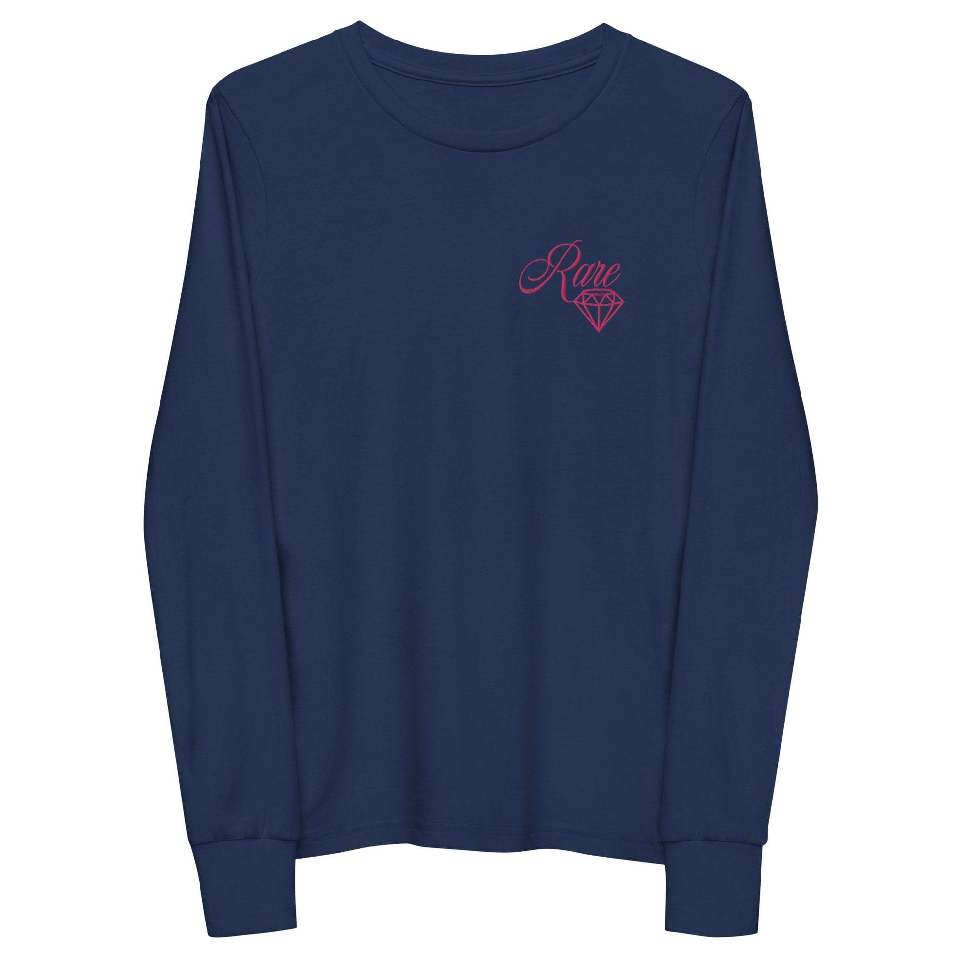 The Youth Long Sleeve Shirt is made of Airlume combed and ringspun cotton, which is known for its softness and durability. The shirt has a regular fit, classic crew neck, and ribbed cuff.